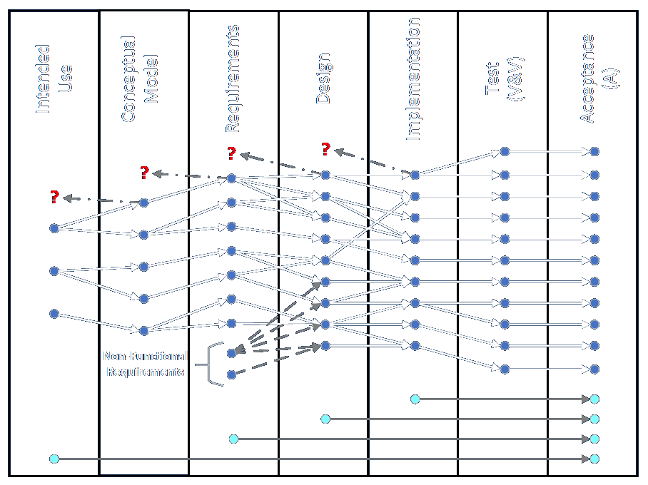 All elements of the implementation must map in both directions to all elements of the Conceptual Model, Requirements, and Design via the Requirements Traceability Matrix (RTM).