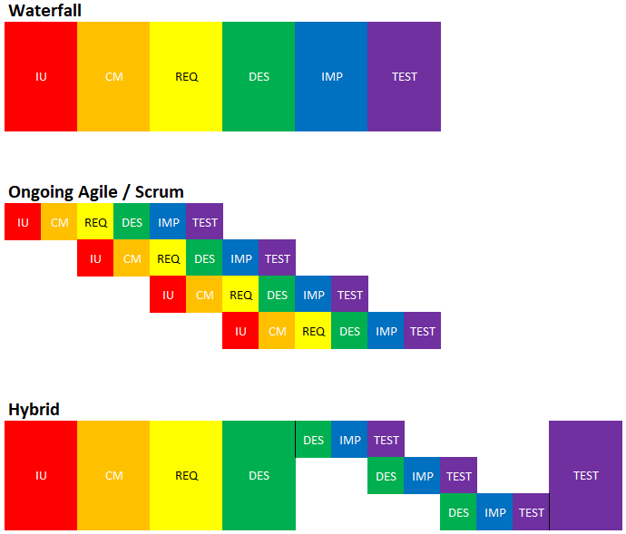 Usually best for processes that have a defined beginning and end. Continuous discovery, data collection, redefinition of requirements, update of design, and reimplementation can be carried out for ongoing, reactive, support and maintenance operations.